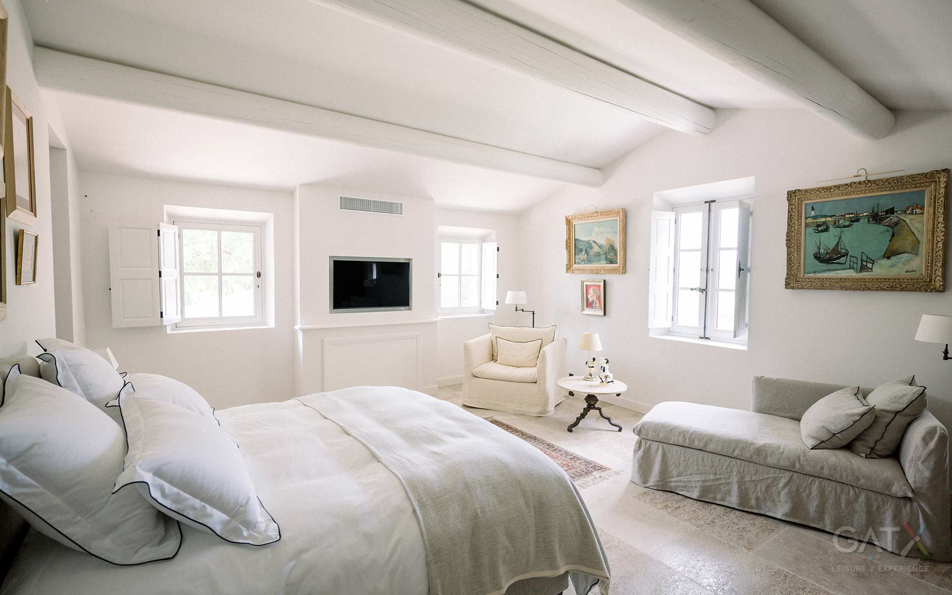 El propietario, viniendo de una familia de anticuarios de cinco generaciones (desde 1891), ha amueblado la mansión al estilo de una lujosa residencia del siglo XVIII en la Provenza.
